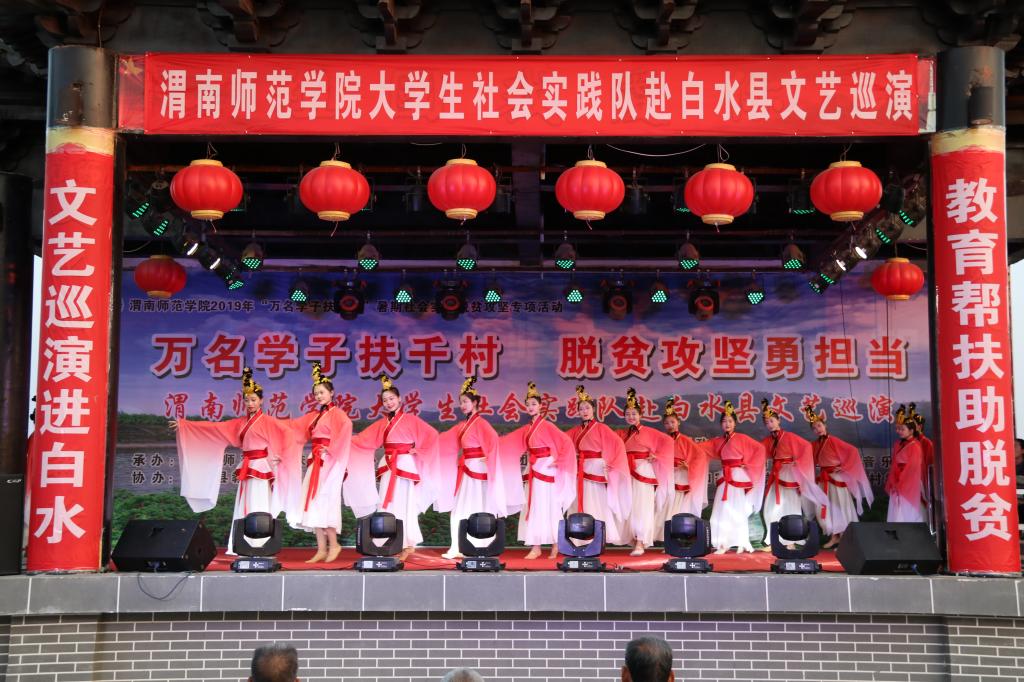 据了解,已开展的两场演出是bat365正版唯一官网2019年“万名学子扶千村”暑期社会实践脱贫攻坚专项活动,后续还将奔赴大荔县安仁镇龙门村和中国人民解放军驻渭某部队开展文艺演出。活动的开展既是学校贯彻落实省教育工委、共青团省委有关社会实践脱贫攻坚工作的具体举措,也是学校帮扶白水脱贫攻坚、致力扶心扶智的友谊见证。长期以来,bat365正版唯一官网大力支持白水脱贫攻坚工作重点,围绕苹果产业发展、“文创”白水建设、教育强县战略等,着力实施结对帮扶“八大工程”,围绕扶心扶志扶智多次为白水人民带来文化盛宴。(文/于占豪 白炜 图/白水县扶贫新闻宣传实践团)