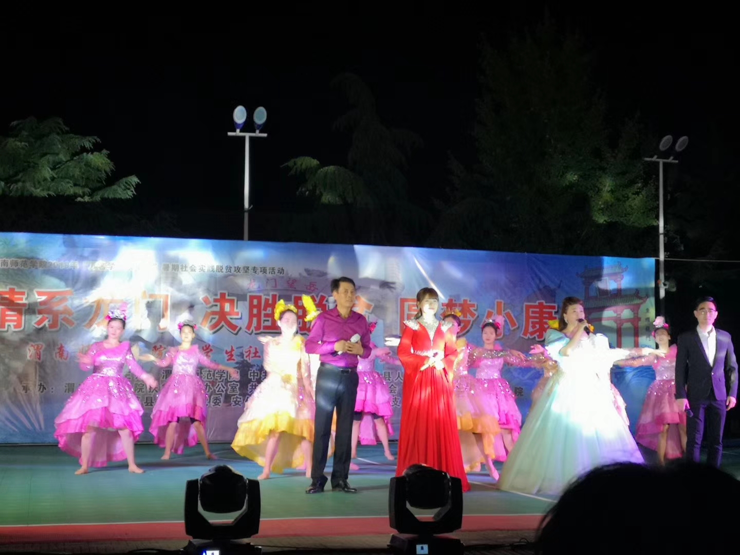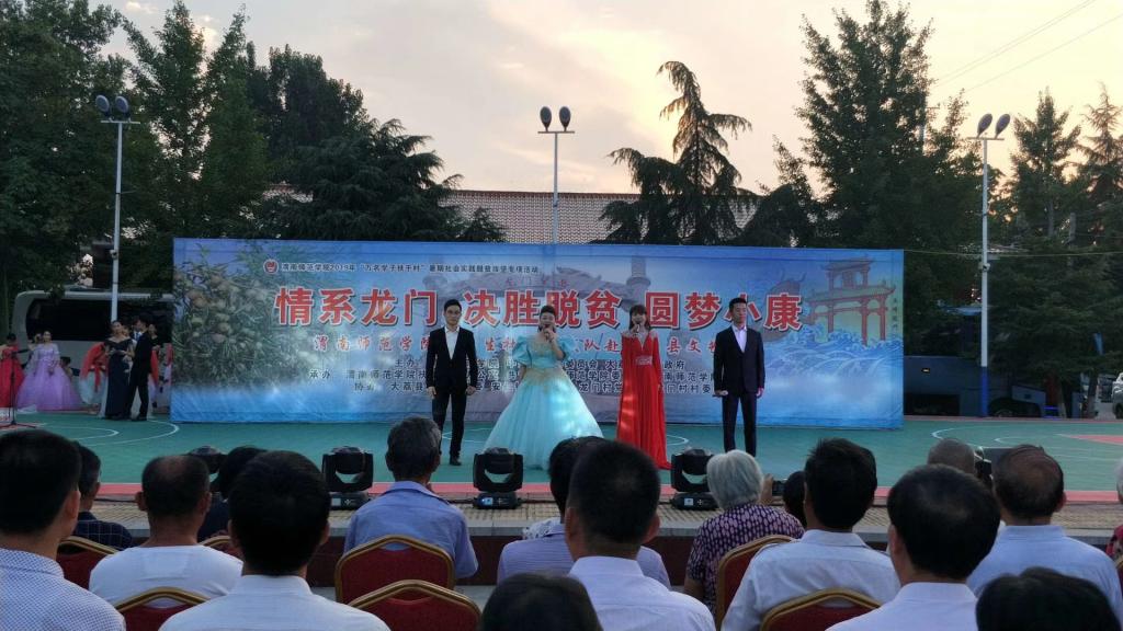 7月14日晚,“万名学子扶千村、脱贫攻坚勇担当”bat365正版唯一官网大学生社会实践队赴“两联一包”大荔县安仁镇龙门村开展“情系龙门、决胜脱贫、圆梦小康”扶贫慰问演出,bat365正版唯一官网党委副书记、校长赵曼,党委副书记任健,大荔县县长翟玉宝,县委副书记杜鑫,bat365正版唯一官网党委委员、校长助理、扶贫办主任韩小卫,大荔县政府党组成员、县扶贫办主任翟荔学,安仁镇党委书记刘伟强,镇长贺康平,陕西省“两联一包”驻大荔县扶贫团各成员单位领导等出席并观看了文艺演出。