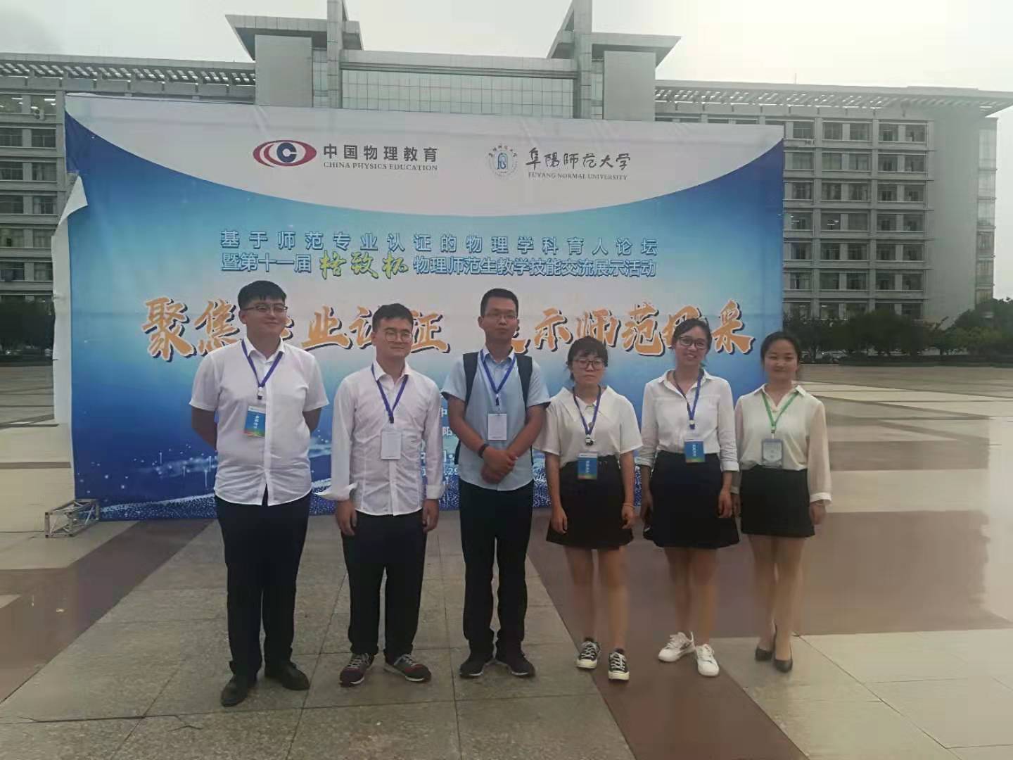 2019年7月29日—31日,由中国教育学会物理教学专业委员会、《物理教师》编辑部、《中学物理》编辑部联合主办的基于师范专业认证的物理学科论坛暨第十一届“格致杯”物理师范生教学技能展示活动在阜阳师范大学举行。本次交流会旨在于师范专业认证背景下培养和提高将于2020年毕业的硕、本学生的物理教学技能、自制教具与设计实验等方面的核心能力素养。指导老师白秀英、郭宝会带领bat365官网选手参赛。
