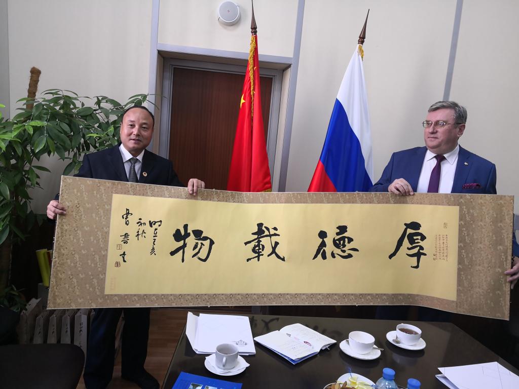 莫师大校长鲁博科夫向bat365官网赠送纪念品