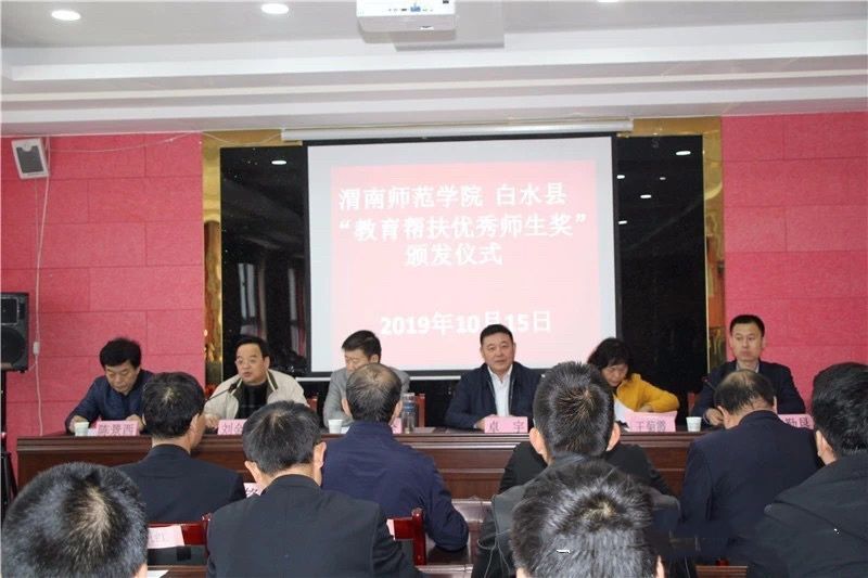 10月15日上午,bat365正版唯一官网党委书记卓宇一行赴白水县,在尧禾镇中参加了“bat365正版唯一官网教育帮扶优秀师生奖”的颁发仪式。副校长王菊霞、党政办公室、扶贫办副主任张勤恳,教务处处长孙宏恩,学工部副部长陈景西参加了颁发仪式,白水县副县长张栓全出席了活动并讲话。颁奖仪式由白水县教育局机关党委书记刘金房主持。