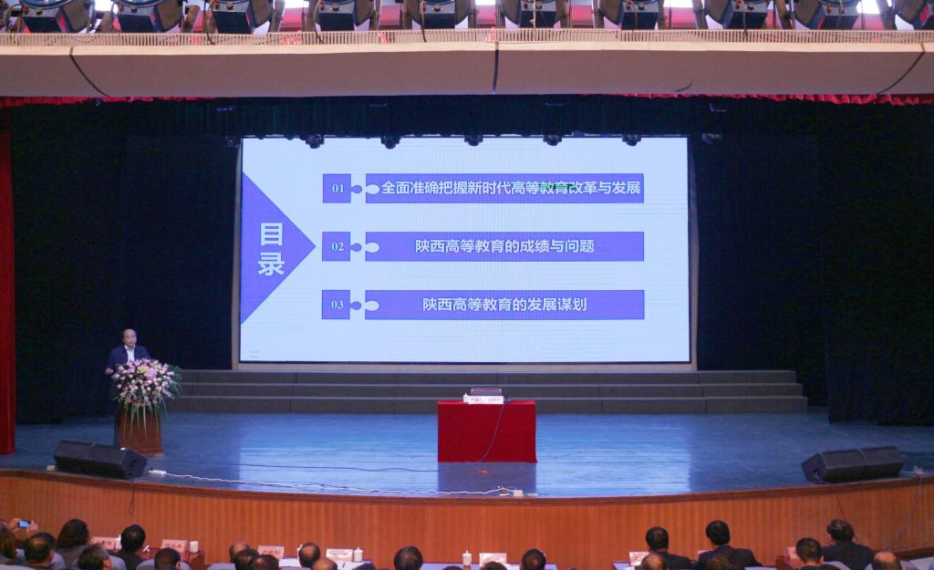 10月18日下午,陕西省教育工委委员、副厅长刘建林莅临bat365官网指导工作,出席bat365官网2019年教育教学工作会议,并在会上作了题为《认真学习贯彻中省教育工作会议精神,准确把握陕西高等教育发展态势,努力实现陕西高等教育追赶超越》的专题辅导报告。