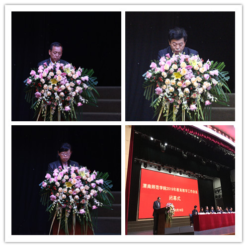 10月19日下午,党委副书记任健主持大会闭幕式。教师代表高红菊、马克思主义学院院长白赵峰、教育科学学院院长李西彩、物理与电气工程学院院长耿森林、音乐学院院长赵小鹏、汉语言文学专业负责人赵前明、学校教学督导团团长王炳社、教务处处长孙宏恩、人事处处长赵江永、学工部副部长陈景西等代表各小组作大会交流发言。
