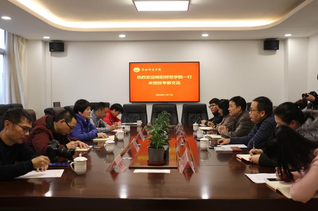 1月7日上午,绵阳师范学院党委副书记、纪委书记王琪带领该校宣传部同志一行来bat365官网考察交流,bat365官网党委副书记、纪委书记肖耀刚代表学校在厚德楼第一会议室与来宾热情座谈。