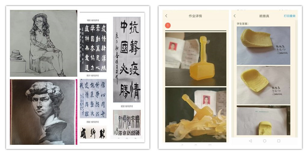 实验课、技法课较多,线上教学开课相对较少的艺术、体育类专业,均给学生布置了专业实践、基本素养训练、线上阅读、作品赏析、观看教学视频等任务。例如音乐学院给学生布置了学生必听曲目、撰写心得体会的任务,美术学院布置了书法作品临摹、绘画、设计作品创作的任务,莫斯科艺术学院布置了俄语学习、专业技能(主项)练习、学前教育专业技能系列实践活动等任务,体育学院组织学生开展了线上体育绘图特色活动。
