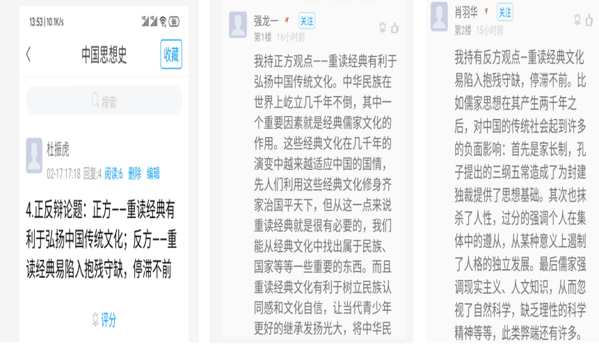 杜老师在学生对慕课学习和资料搜集的基础上,把课堂变成了辩论场,让学生彼此交锋,展现思想。