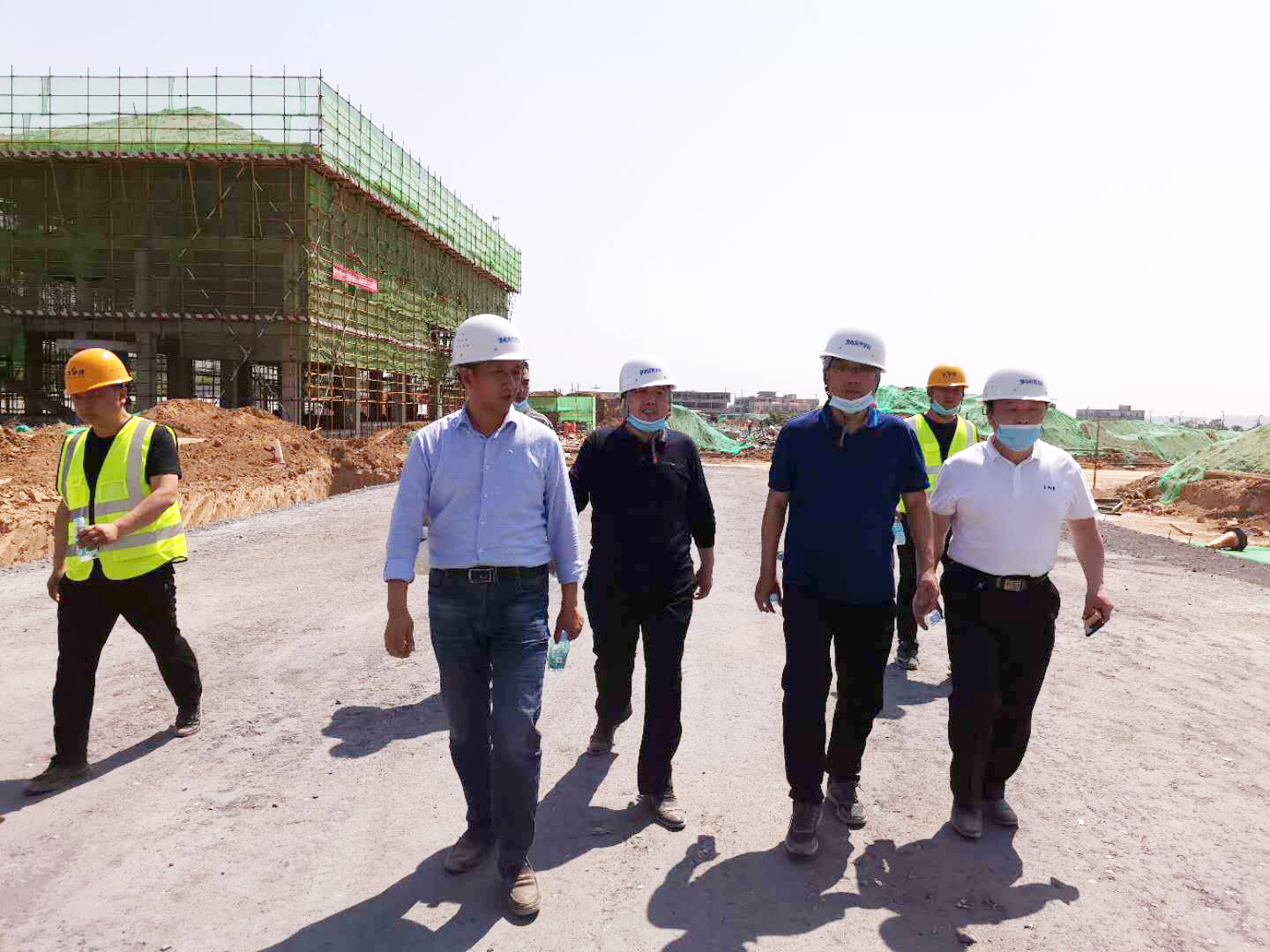 5月3日,副校长韩小卫在富平校区管委会、施工方及监理方陪同下,实地查看了富平校区行政楼、动力中心、体育场看台、室外篮球场、风雨操场、主教学楼、学术交流中心、开关站、实训楼、学生公寓、学生食堂、后勤服务中心、室外雨水、污水管道、综合管沟铺设等施工现场,对工程建设工作进行检查指导。