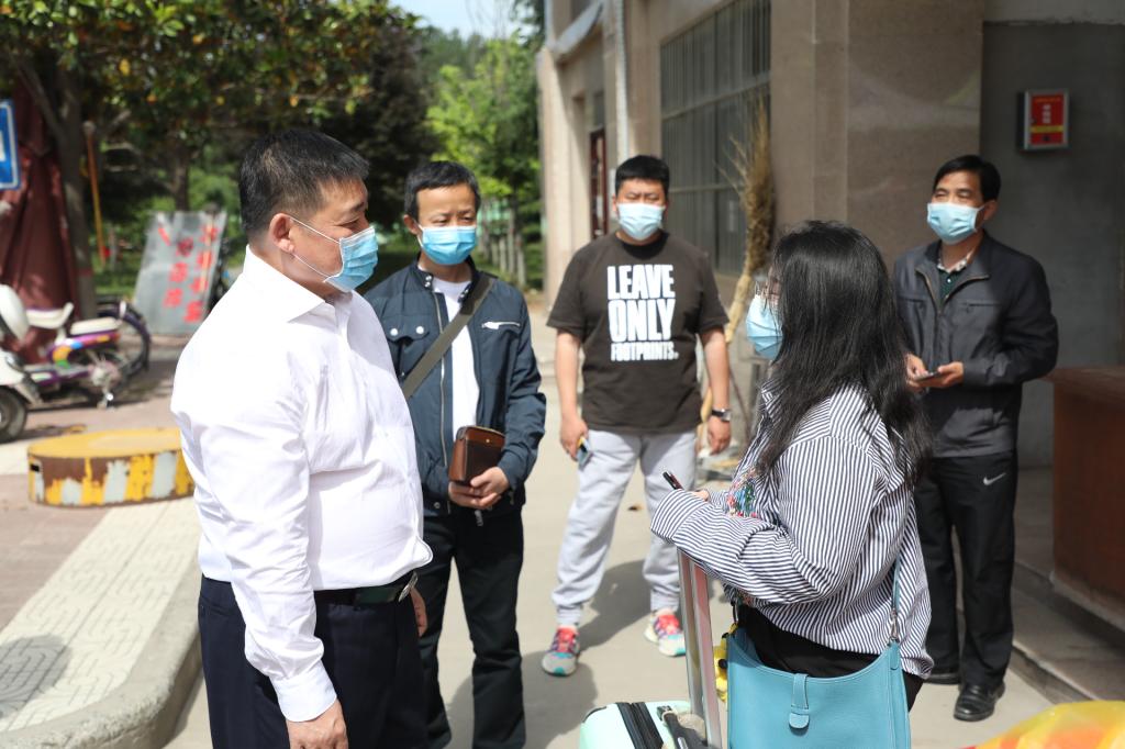 5月11日,是bat365官网2020年春季学期学生返校的第一天。上午,学校党委书记卓宇到朝阳校区北门,向陆续返校的学生表示欢迎,并与学生亲切交谈,了解返校过程,询问防疫居家期间的学习和毕业论文等完成情况,关心学生就业是否顺利,并提醒学生注意防护,有困难及时提出,努力完成好学业,关注近期学校组织的网上招聘会,积极就业。在与返校的2016级汉语国际教育2班林怡文和2016级汉语言文学专业1班肖可佳等同学交谈中,得知他们都已考取了教师资格证,欣慰地叮嘱学生关注教师招聘考试、特岗计划等,在这次疫情的大考中,要更加坚定爱党爱国之心,常怀感恩之情,顺利完成学业,到祖国最需要的地方建功立业。