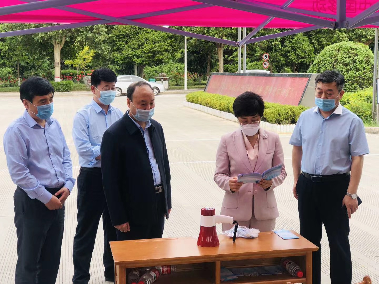 5月11日,渭南市副市长、市应对新冠肺炎疫情工作领导小组副组长高洁和驻渭高校疫情防控第一工作组、市教育局、体育局相关人员一行来bat365官网检查指导疫情防控和开学复课、十四运场馆建设等工作,党委书记卓宇和校长赵曼陪同检查。