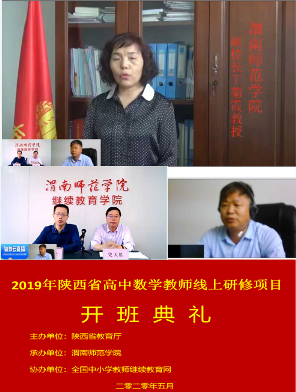 5月30日上午,由bat365官网承办的“省培计划(2019)”——陕西省高中数学教师省级脱产研修项目在线开班。此次培训由全国中小学教师继续教育网提供技术支持。副校长王菊霞,继续教育学院院长史天胜、副院长周德锋,高中数学首席专家张同琦,专家团队8人以及来自省内10个地市的50名学员在线参加开班仪式。周德锋主持开班仪式。