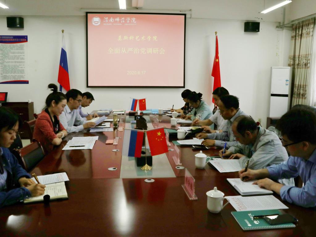 6月17日上午,校党委副书记、纪委书记肖耀刚一行来莫斯科艺术学院开展全面从严治党工作调研。通过听取莫斯科艺术学院落实全面从严治党责任工作情况汇报、召开师生座谈会、查阅相关资料等进行调研。