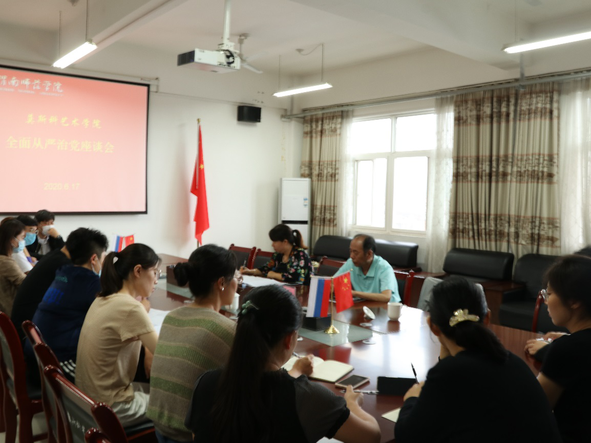 汇报会由莫斯科艺术学院执行院长梁晶主持,学院党总支书记席景奇做全面从严治党工作汇报。席景奇从如何加强对高校思想政治工作的监督、如何对教职工及学生思想政治工作日常管理、如何强化意识形态工作、如何落实高校基层党组织全面从严治党主体责任四个方面对学院全面从严治党工作进行详细汇报。最后,坚持问题导向,分析学院目前存在的问题,提出下一步工作设想。