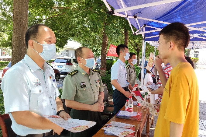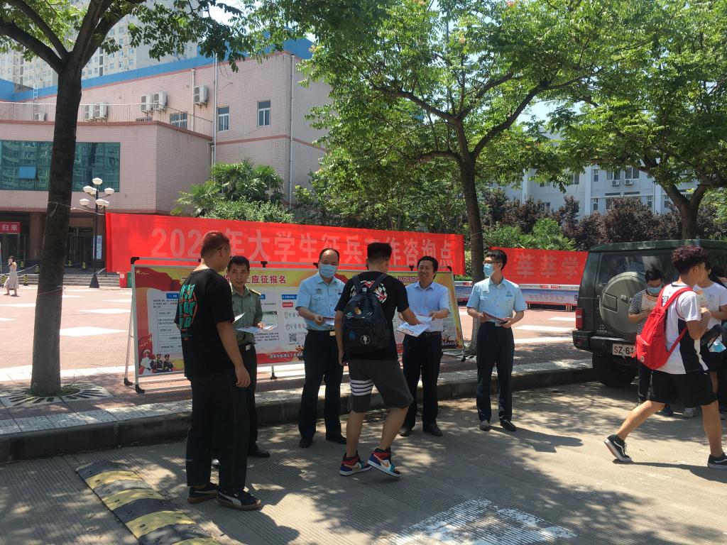 6月18日上午,bat365官网在一餐门前举行2020年大学生征兵宣传咨询活动,特邀渭南军分区动员处处长沈礼军、临渭区武装部政工科科长张磊等一行十余人来bat365官网为大学生讲解宣传2020年征兵相关政策,bat365官网先后有五百余名大学生前来咨询了解相关政策。