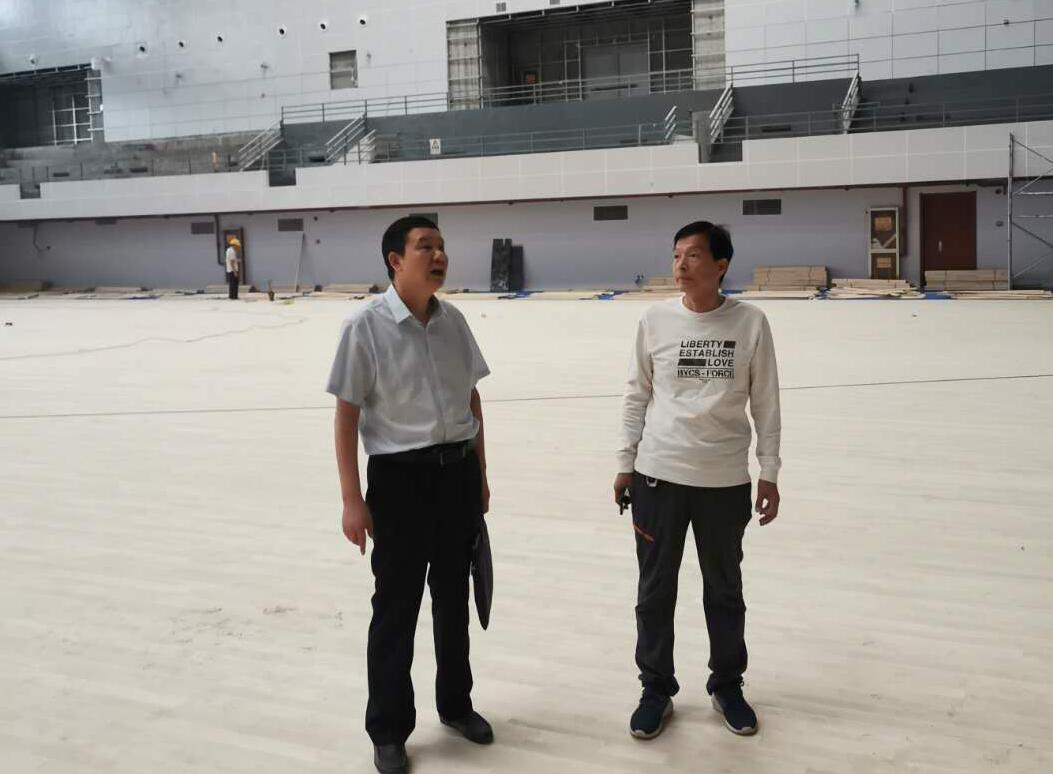 肖耀刚深入到正在铺设木地板的主竞赛馆和乒乓球训练中心等场馆现场,了解工程进度、监督工程质量。在查看室外工程施工现场时,肖耀刚书记和韩小卫副校长就630工程建设工作充分交换了意见。