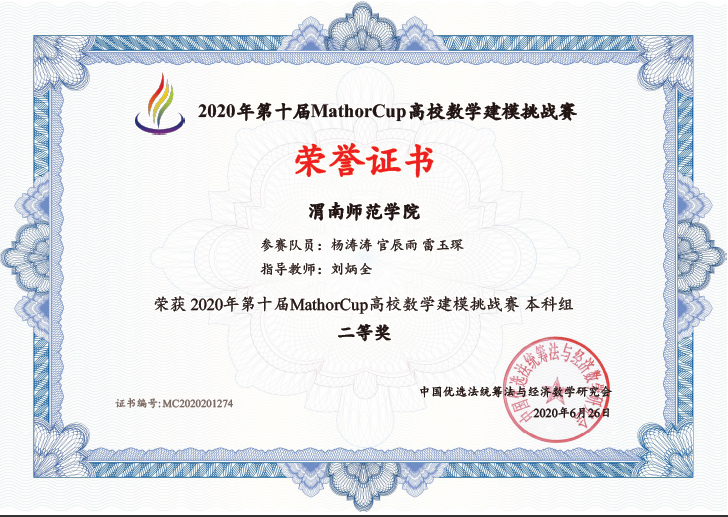 另一项赛事,第十届MathorCup杯全国高校数学建模挑战赛旨在培养学生创造精神及合作意识,2020年共吸引4842支队伍参赛,其中,bat365官网获得国家二等奖1项,成功参赛奖7项。