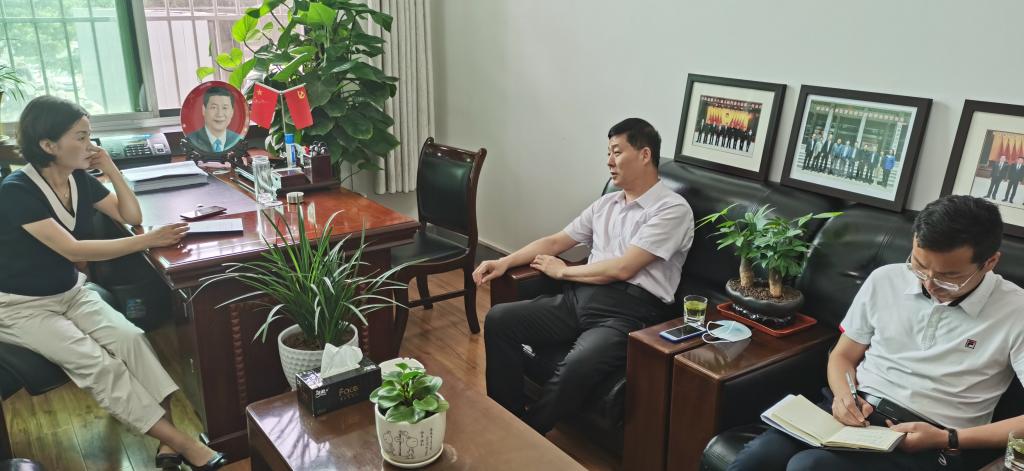 在白水县人民政府,任健与白水县副县长胡小英代表校地双方就结对帮扶工作实施情况进行了深入交流。任健感谢白水县委、县政府对bat365官网结对帮扶工作的支持,校地双方长期保持良好的合作态势,在教育扶贫、文化扶贫领域都取得了一定成效。今年受新冠肺炎疫情的影响,对开展校地结对帮扶提出新的挑战,希望双方加强沟通与协调,特别是针对白水教育和文化的需求,学校会进一步加强体音美教师支教、文化+旅游同行、文史研究挖掘、仓颉文学创作等方面结对帮扶。胡小英对bat365官网长期以来助力白水县脱贫攻坚,尤其在教育和文化等方面支持力度比较大,对bat365官网所做的工作表示感谢和肯定。她表示会积极协调相关部门,主动对接,保障结对帮扶工作顺利开展。