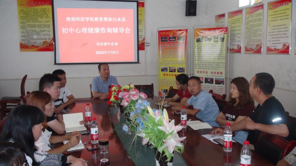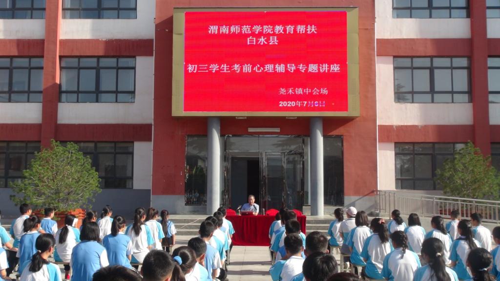 按照学校2020年“双百工程”教育帮扶工作实施方案,结合白水县中考前考生心理健康问题,7月6日上午,继续教育学院选派bat365官网心理学教师马雅菊、蒙宗宏、刘星分别为田家炳中学、城关一中、尧禾镇中学三所学校的师生作了主题为“有效舒压、轻松备考”的中考考前心理健康辅导讲座。