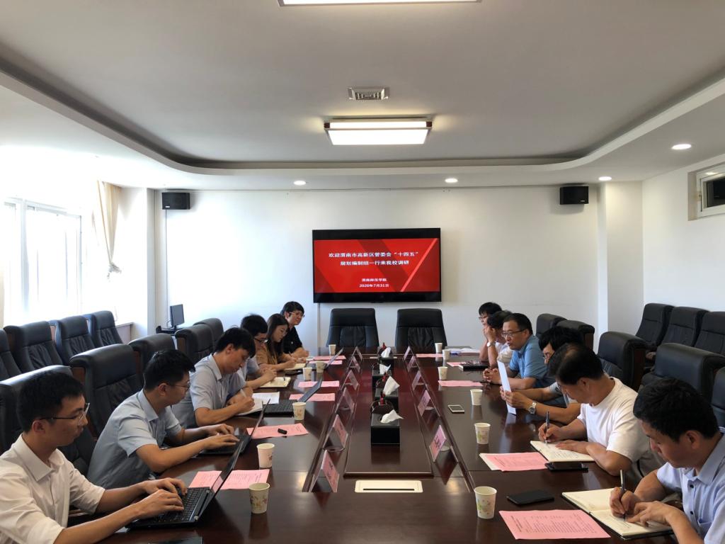 7月31日下午,在厚德楼四楼第一会议室,渭南市高新区管委会发改委与长城战略咨询人员一行6人来bat365官网就“十四五”校地合作相关事宜进行座谈。副校长曹强出席,科学研究处处长王双喜、大学科技园总经理王建平、化学与材料学院院长焦更生、物理与电气工程学院相关专业负责人何冰及发展规划处徐军义等同志参加了座谈。
