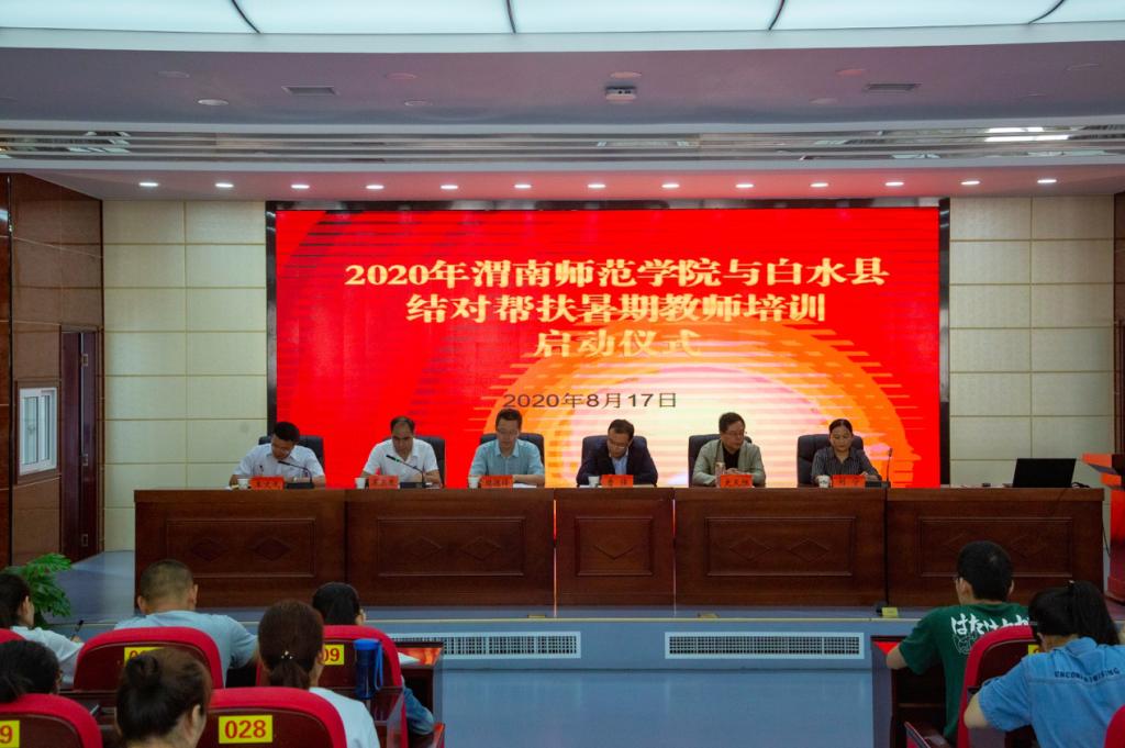 8月17日上午,bat365官网与白水县结对帮扶暑期师资培训首期开班仪式在白水县教育局机关四楼教师培训中心举行。副校长曹强,继续教育学院和白水县教育局相关负责人等出席开班仪式。白水县110名骨干教师到会参训。会议由白水县教育局局长屈玉虎主持。