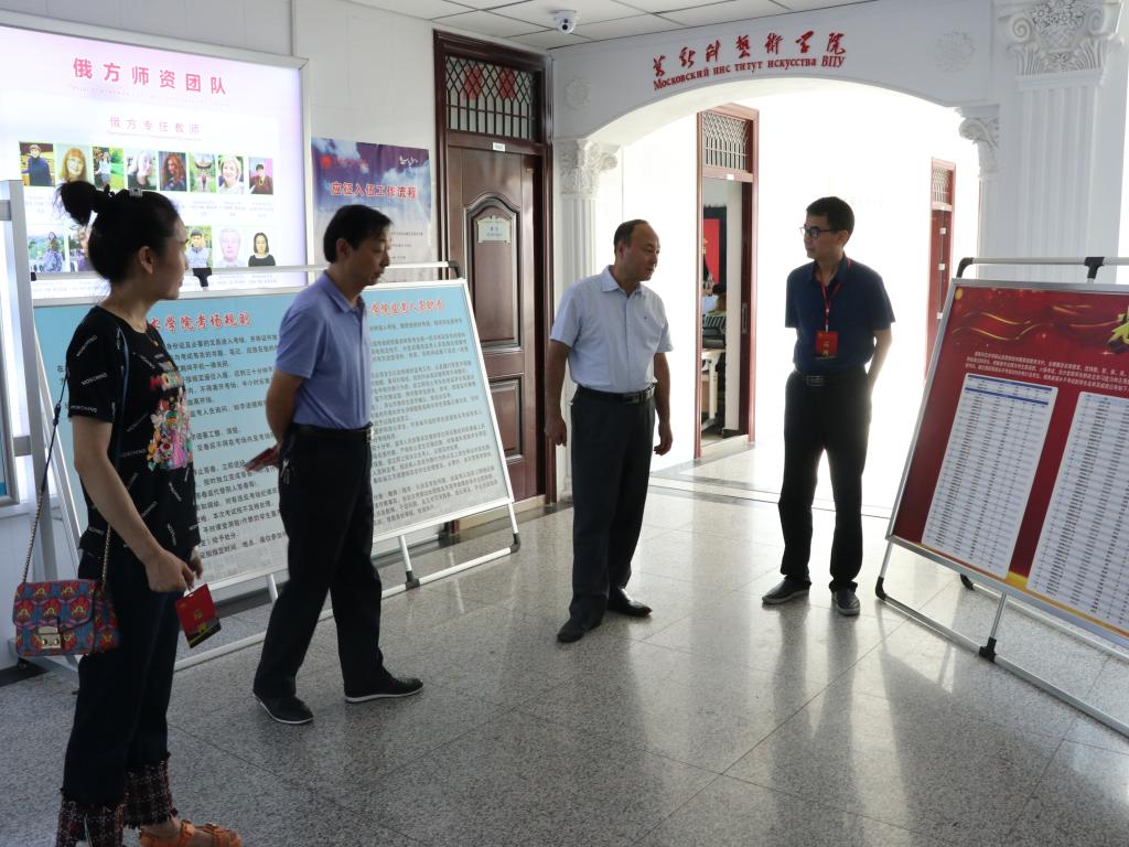8月24日上午,校长赵曼来到莫斯科艺术学院检查指导开学工作,莫斯科艺术学院党总支书记席景奇、执行院长梁晶、党总支副书记孟波及学院相关人员陪同检查。