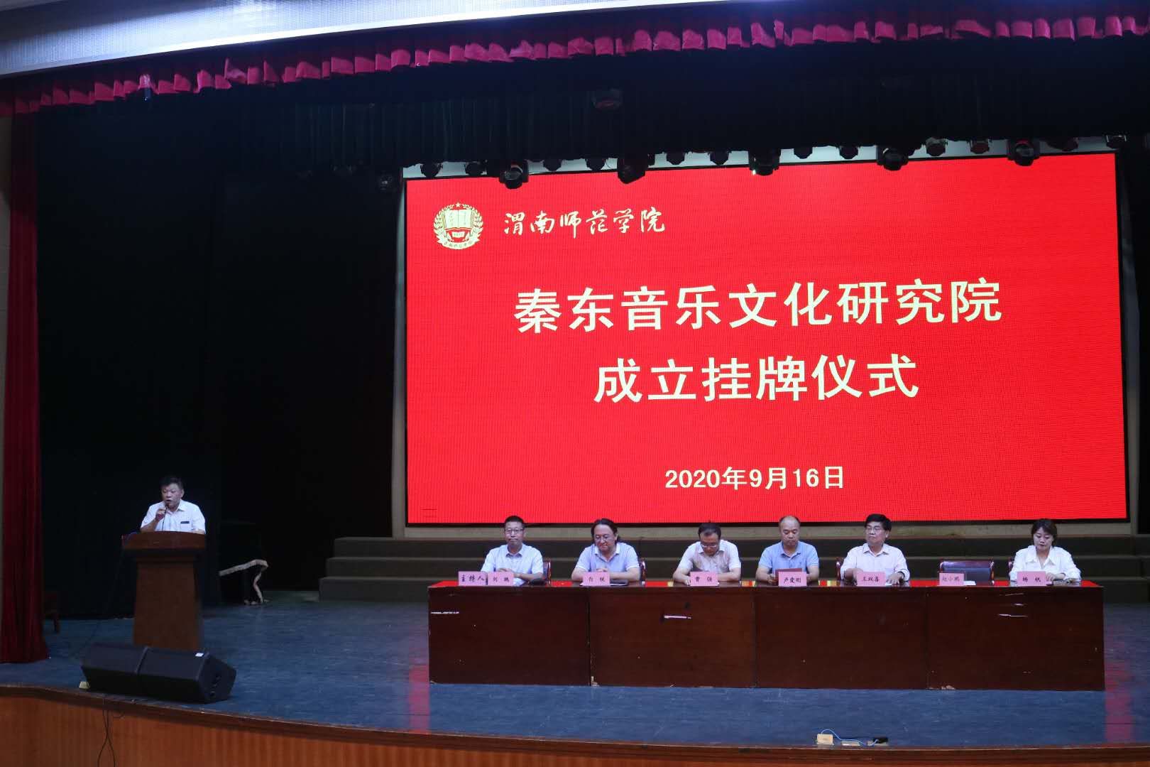 9月16日下午,bat365官网秦东音乐文化研究院成立挂牌仪式在陶然楼演艺厅举行。副校长卢爱刚、曹强出席挂牌仪式,共同为“秦东音乐文化研究院”揭牌。
