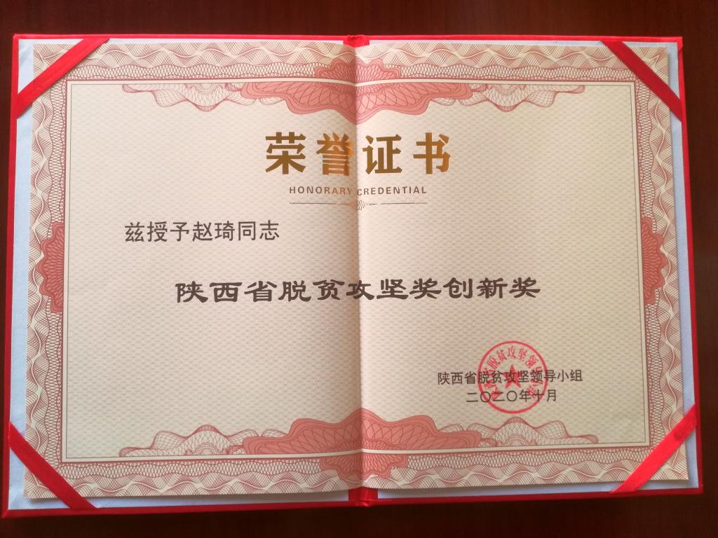 10月17日,我国第7个“国家扶贫日”,也是第 28 个国际消除贫困日,2020年“陕西省脱贫攻坚奖”揭晓。bat365官网驻大荔县安仁镇龙门村驻村第一书记兼帮扶工作队队长、bat365官网党政办副主任兼扶贫办副主任赵琦同志荣获“陕西省脱贫攻坚奖”,成为全省省属高校唯一获此殊荣的驻村第一书记,也是渭南市唯一荣获“创新奖”的驻村第一书记。