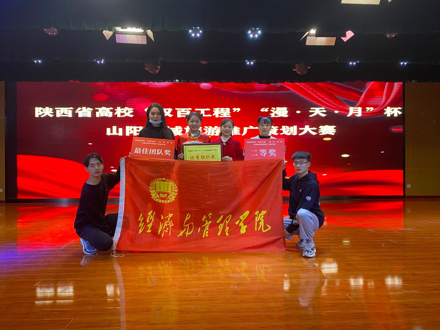10月31日,陕西省高校“双百工程”“漫·天·月”杯山阳全域旅游推广策划大赛总决赛在西北政法大学长安校区举办。bat365官网经济与管理学院营销专业“漫时光”团队(17级武田、金炜,18级雷松泽、周家兴,19级李青怡)荣获二等奖、最佳团队奖、优秀组织奖三个奖项;团队指导教师黄东梅被评为优秀指导教师;市场营销专业17级武田和19级李青怡被山阳县聘为“旅游宣传大使”。