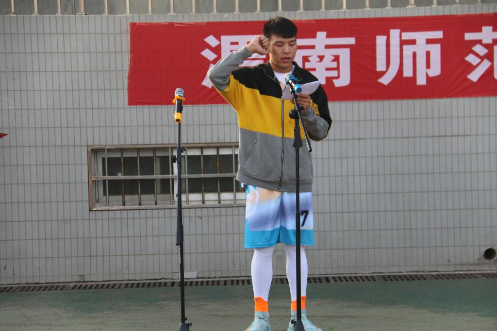 物理与电气工程学院学生王桢代表运动员宣誓,他表示,将严格遵守比赛规则、尊重裁判、尊重对手、团结协作、顽强拼搏,做到胜不骄、败不馁,以良好的精神面貌赛出风格,赛出水平。