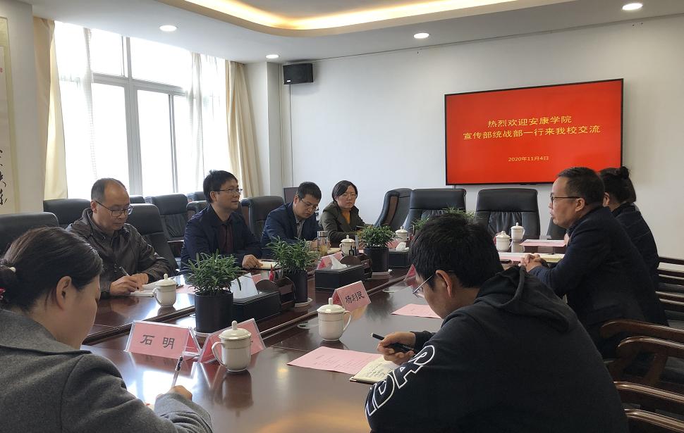 李明敏对安康学院党委委员、宣传部兼统战部部长鲁延安一行的到来表示热烈欢迎,他表示,此次交流活动对加强两校间的部门沟通、促进相互学习和借鉴工作经验、共同推进两校宣传、统战工作具有积极意义。