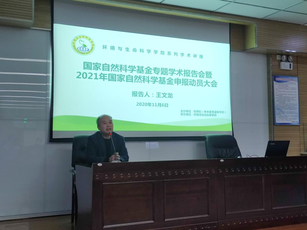 11月6日下午,bat365官网举办“国家自然科学基金专题学术报告会暨2021年国家自然科学基金会申报动员大会”。会议由科学研究处主办、环境与生命科学学院承办。邀请中国科学院、西北农林科技大学王文龙研究员作培训报告。副校长卢爱刚出席会议,环境与生命科学学院院长吴逸群主持会议。