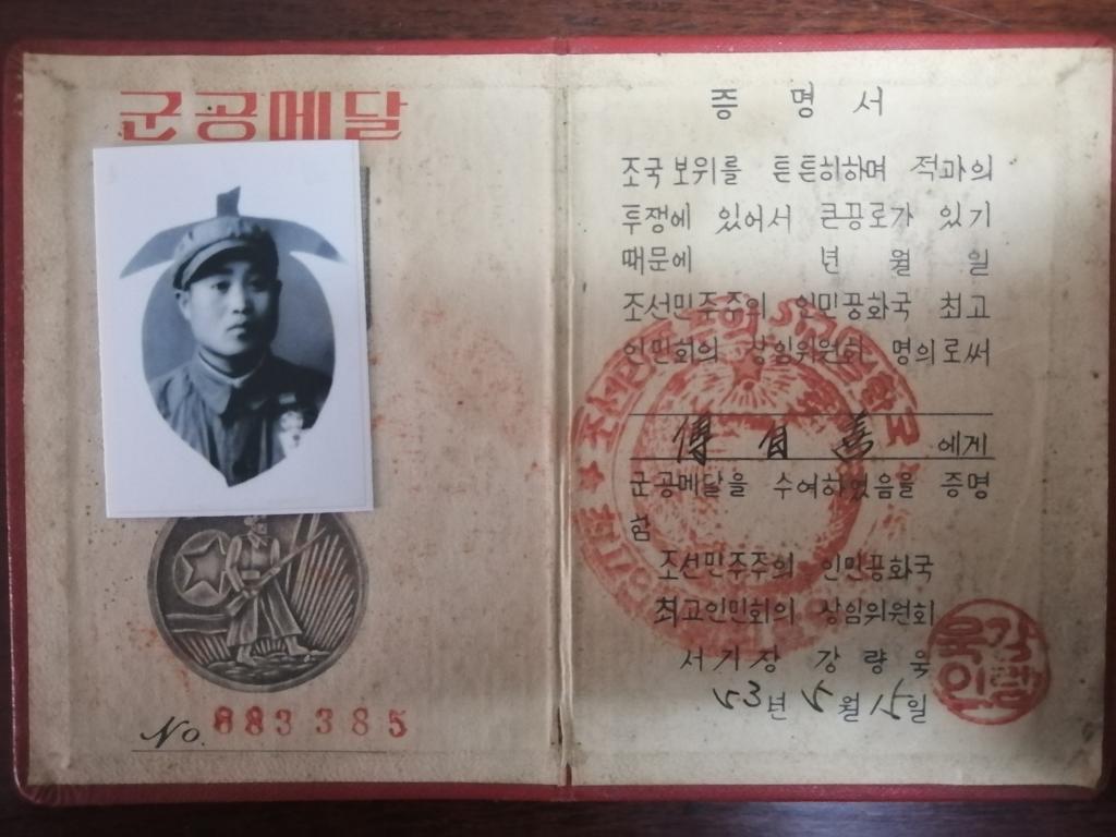 傅自善兴致勃勃地讲述了当年抗美援朝的战斗经历,还拿出了当年抗美援朝作战时朝鲜民主主义人民共和国给颁发的军功奖章和战绩时评,生动形象的描述把大家拉回到了那硝烟弥漫的朝鲜战场,尽管退伍多年,老战士仍然胸怀祖国心系党,每每回首当年的峥嵘岁月,自豪感都油然而生,说到激动时老人当场潸然落泪,现场的所有人也都心怀敬意,热泪盈眶。