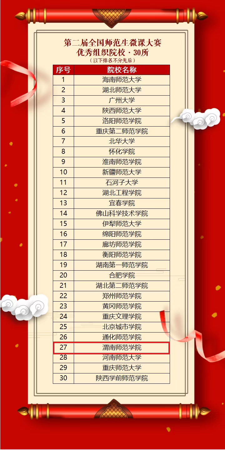12月9日,由教育部主办,陕西师范大学基础教育课程研究中心和西北教师教育联盟承办,陕西师范大学大学生创业项目好老师学院协办的第二届全国师范生微课大赛落下帷幕。经省内外专家网评、会评,bat365官网获特等奖1项、一等奖1项、二等奖4项、优秀奖6项,bat365官网荣获优秀组织单位、数学与统计学院教师刘炳全获优秀指导教师。