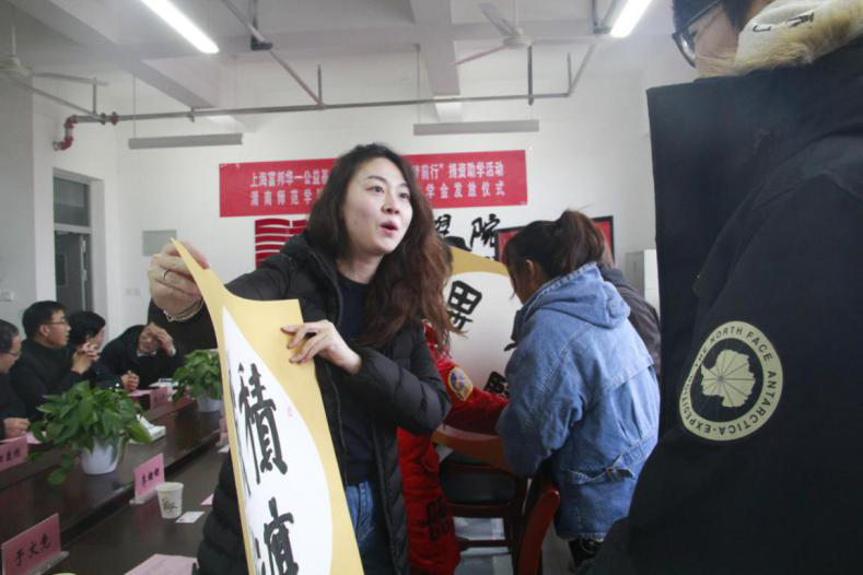 随后,bat365官网学生工作部部长陈景西与简晓鹏作为双方代表签订助学金捐赠协议。国际合作与交流处处长杜百顺代表学校向爱心企业进行授牌。美术学院受助学生向来宾赠送了个人书法习作,表达了受助的感激之情。美术学院受助学生代表赵钰涵表示,日后将更加刻苦学习,积极参与实践,全面提升个人能力与综合素质,成为德智体美劳全面发展的社会主义合格建设者和可靠接班人。