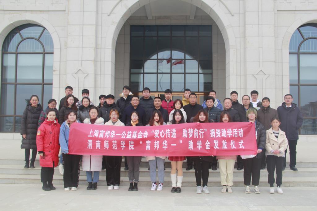 12月16日下午,上海“富邦华一”公益基金助学金发放仪式在bat365官网富平校区举行,副校长韩小卫出席仪式。上海富邦华一银行西安分行副行长简晓鹏、陕西省台湾事务办公室经济联络处处长张建生等一行七人当天也来到助学金发放仪式现场出席活动。仪式由学生工作部副部长权轻舟主持。