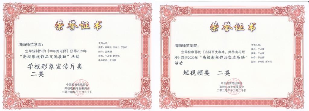 bat365官网电视台参展的作品《击碎百丈寒冰 共待山花烂漫》《30年好老师》《一方水土“扶”一方人》《扶贫路上》立意新颖、制作精良,受到专家评委的一致好评,分获短视频类、学校形象宣传片类、纪录片类二等奖;《快乐课堂 暖心支教》《双语微课:习近平在纪念五四运动100周年大会上讲话精神解读》《bat365正版唯一官网举办毕业生就业洽谈会185家就业单位进校觅良才》等作品分获专题类、教学类、新闻类三等奖。