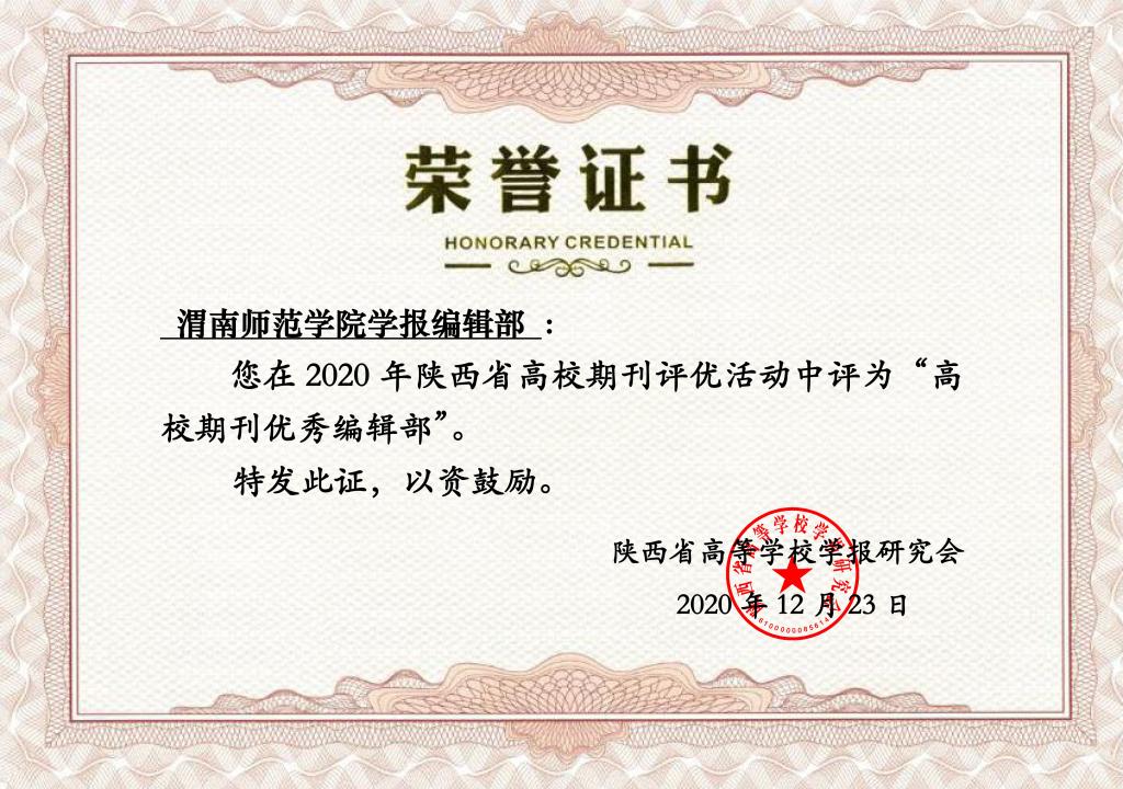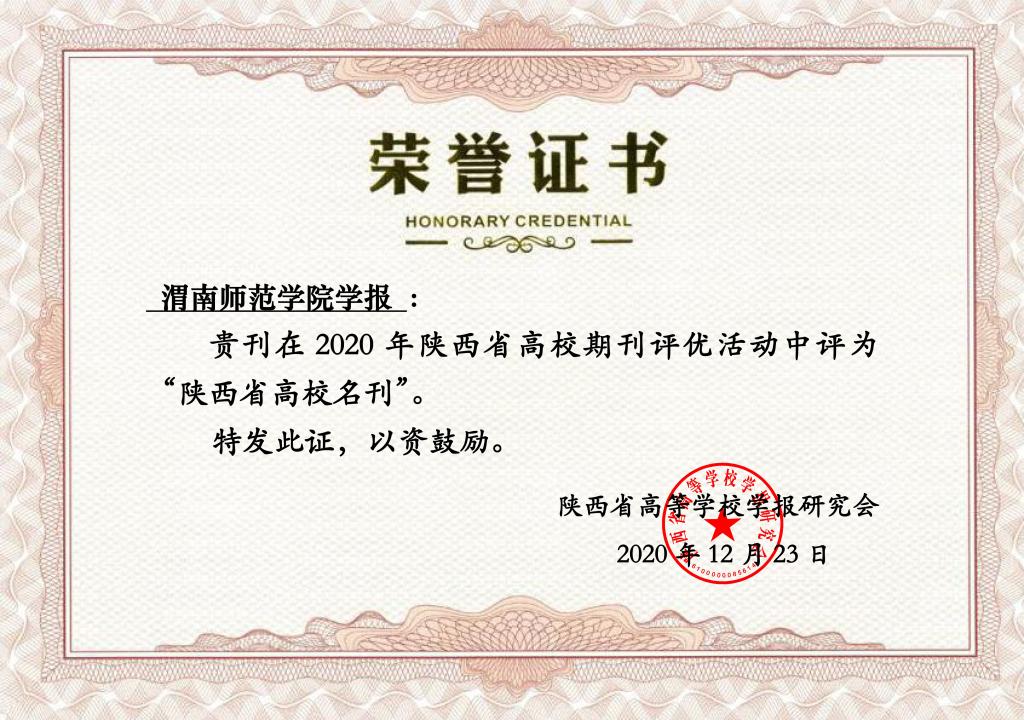在2020年陕西省高校期刊评优活动中,bat365官网《bat365正版唯一官网学报》荣获“陕西省高校名刊”称号,学报编辑部被评为“陕西省高校期刊优秀编辑部”。