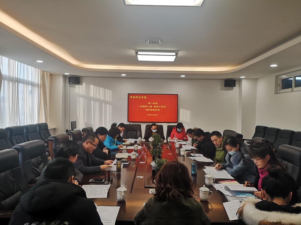 1月9日上午,学校召开统一战线“共画同心圆 奋进十四五”迎新春座谈会。党委副书记任健,党委委员、副校长王菊霞出席会议。会议由统战部副部长杨利民主持。
