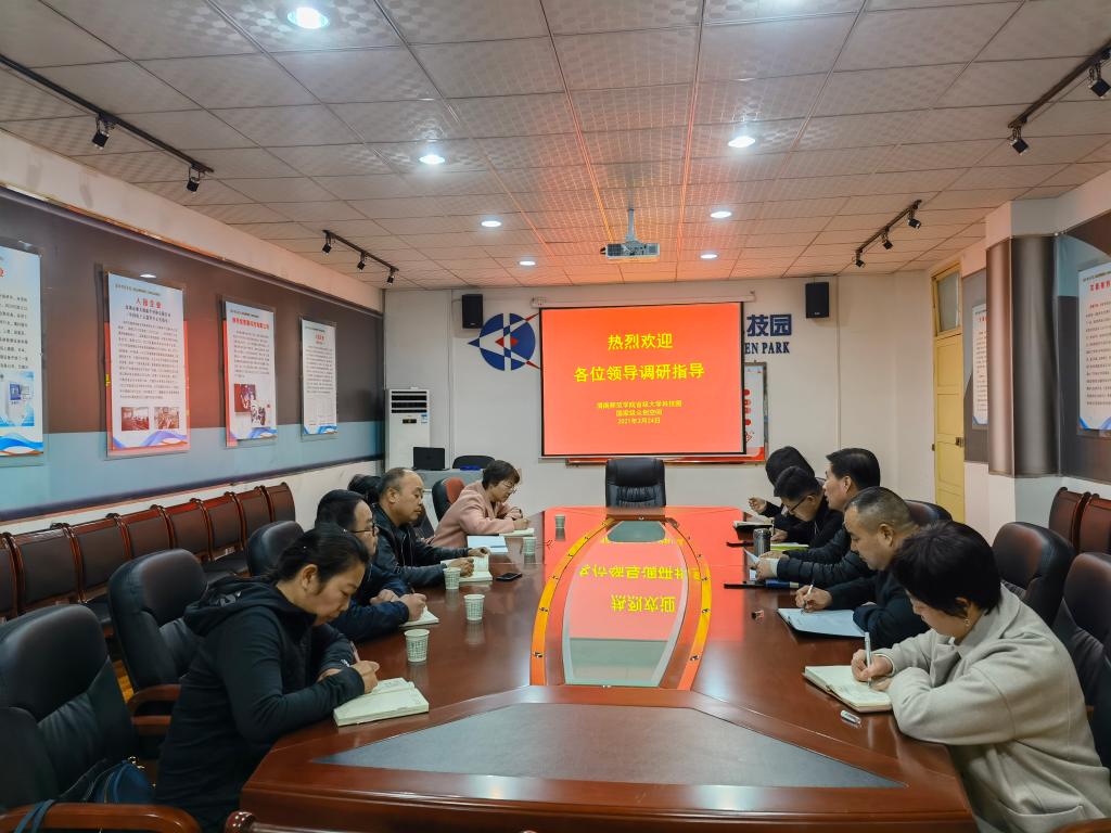 3月24日下午,副校长卢爱刚,科学研究处处长王双喜,副处长王志平、王有景及学科办主任袁梁一行赴大学科技园进行工作调研。