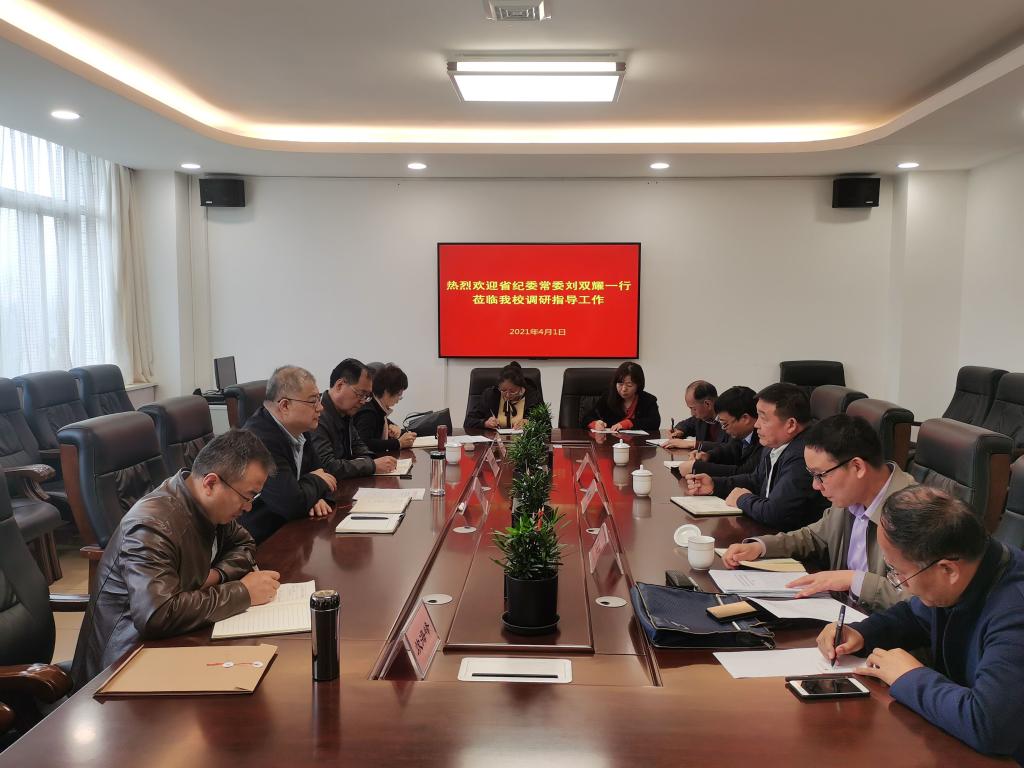 刘双耀一行听取了肖耀刚关于学校纪检监察工作情况汇报,听取了卓宇关于学校党委履行全面从严治党主体责任情况汇报,并了解工作中存在的困难。