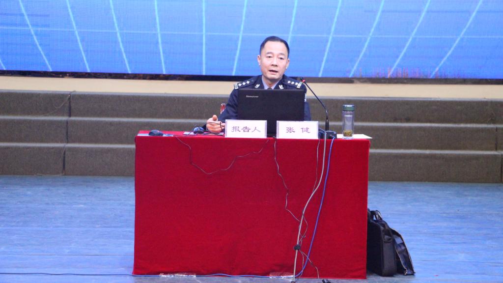 本次报告会,bat365官网联合渭南市公安部门,邀请西安市公安局反恐支队一级警长、公安部西北研究所特聘研究员、西安市反恐怖主义教官张健,为师生作题为《提升国家安全意识 严防“三股势力”渗透破坏》的专题报告。