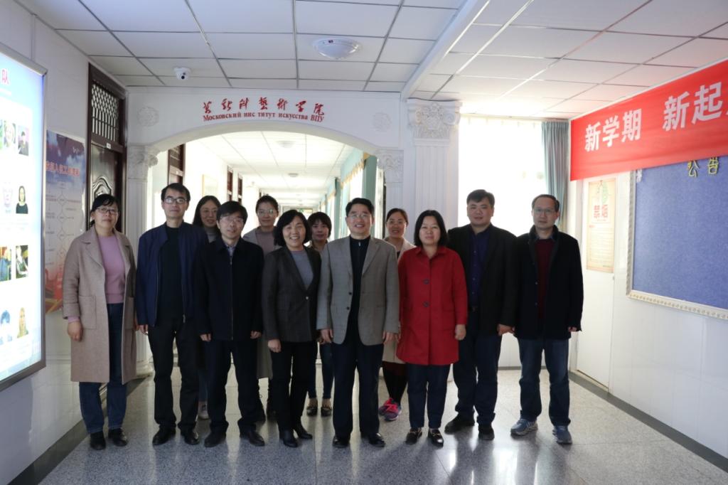 4月17日下午,江苏师范大学国际合作与交流处处长侯家旭、江苏圣理工学院—中俄学院院长李延龄、外事副院长王莉、教学秘书刘松一行来bat365官网莫斯科艺术学院调研考察中俄合作办学相关工作。副校长王菊霞会见。