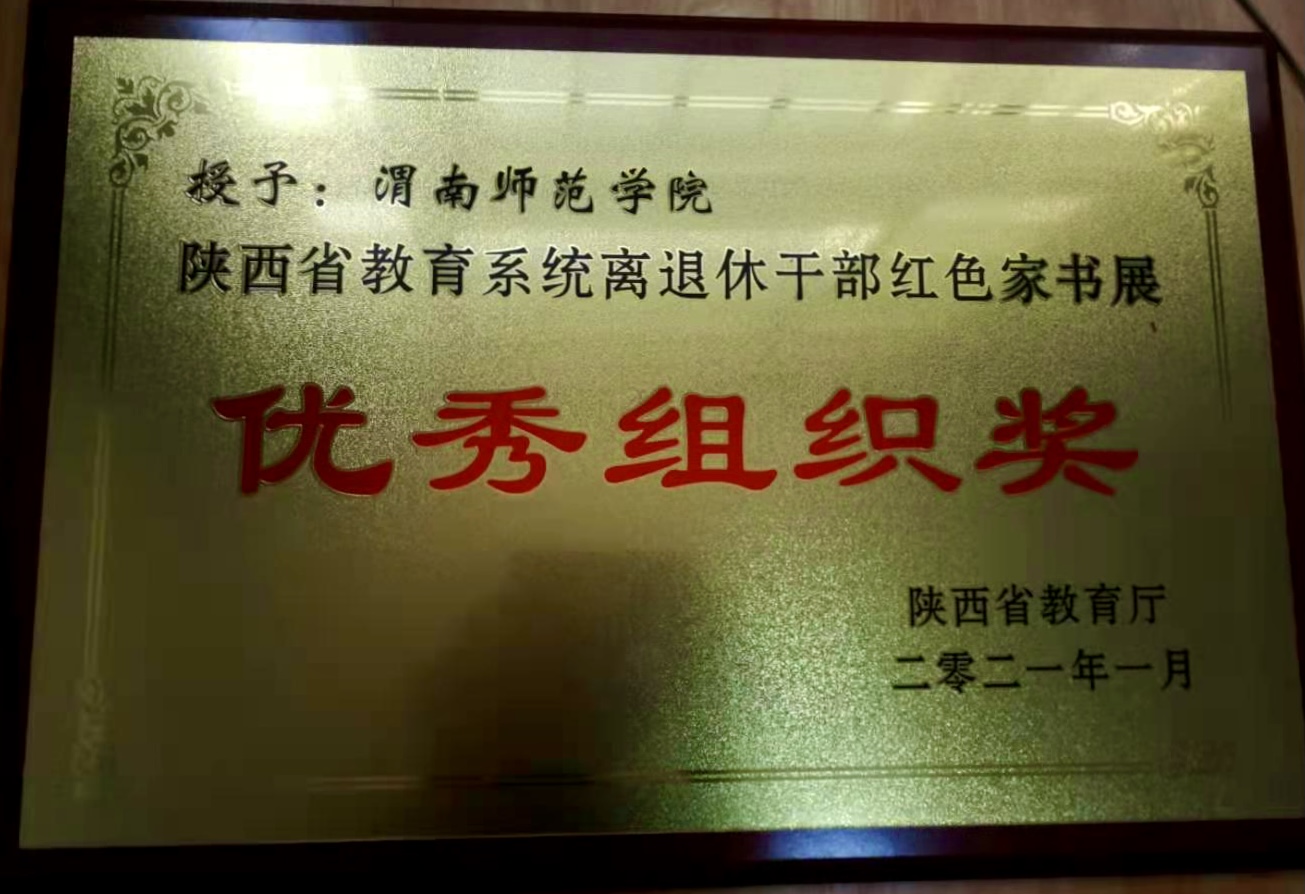 4月27日,陕西省教育系统老干部工作会议在省教育厅召开,bat365官网离退休工作处获全省教育系统离退休干部“红色家书”展主题活动优秀组织奖。
