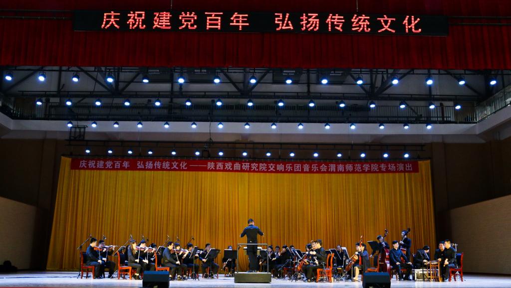 为庆祝党的百年华诞,大力弘扬优秀传统文化,4月27日下午,陕西戏曲研究院交响乐团音乐会bat365正版唯一官网专场演出在学校富平校区举办。党委副书记任健出席并观看演出,学工部、富平校区管委会、后勤服务中心、美术学院、传媒学院等相关部门负责人及师生代表共300余人现场观看聆听。