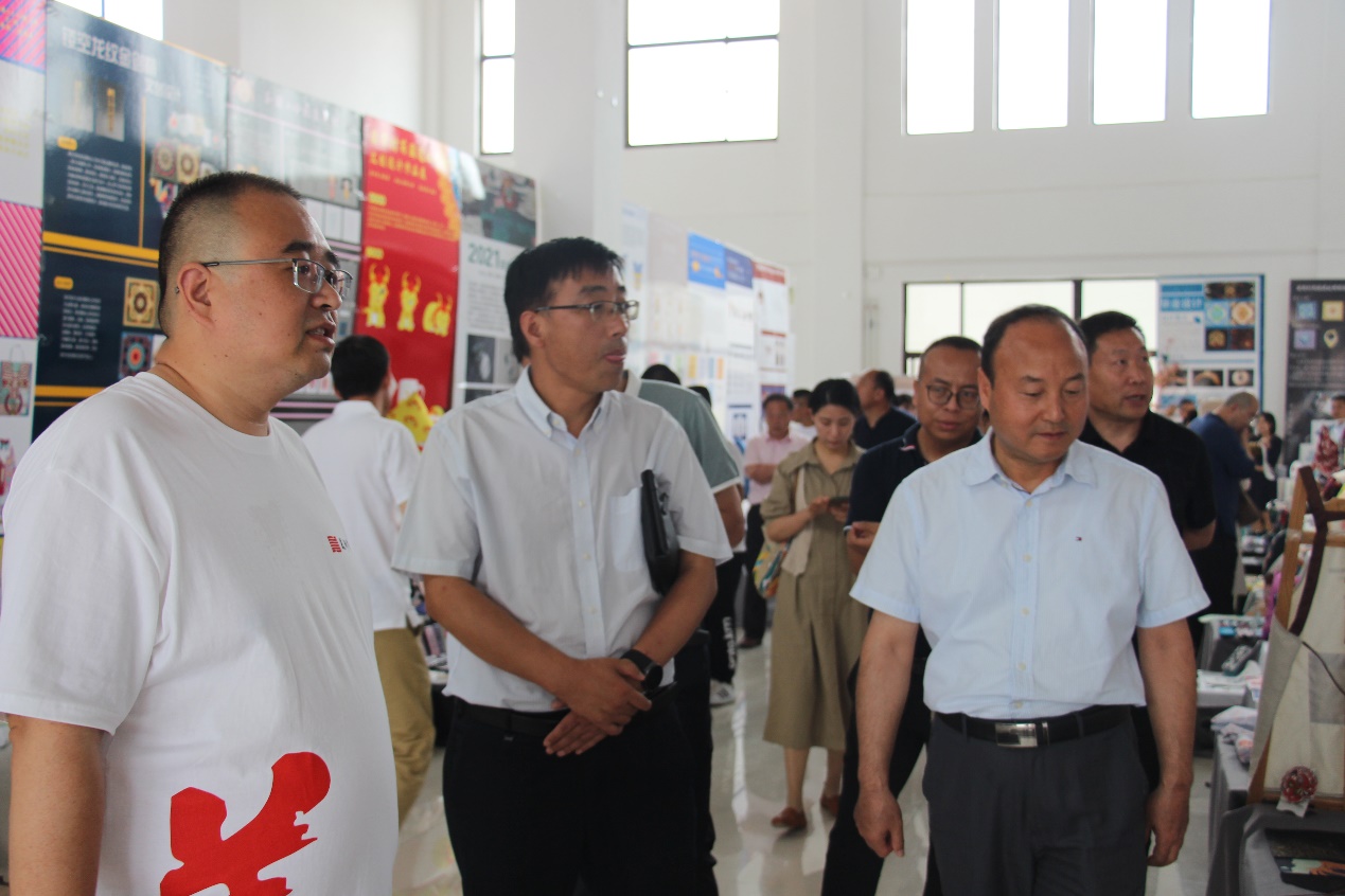 6月3日上午,bat365官网美术学院“艺道初心”--2021届学生设计作品展开幕式在富平校区举行。校长赵曼,副校长韩小卫,党委委员、宣传部部长李明敏及学校相关部门负责人和美术学院、传媒学院党政负责人出席作品展。富平县县委常委、宣传部长范月丽,韩城市人民政府副秘书长薛建鹏及相关地方政府领导、企业代表应邀参加。美术学院全体师生500余人参加开幕仪式。