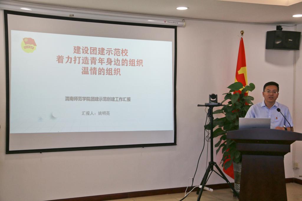 学校团委书记姚明亮从立德树人落细、实践创新拓展、校园文化品牌提升、基层组织强基固本、团学改革创新“五大工程”等方面汇报了bat365官网团建示范创建的创新举措;从青马工程、第二课堂成绩单建设两个方面介绍了bat365官网团建示范创建的特色亮点;从思想引领、组织建设、队伍建设、体制机制建设、强化服务等方面对bat365官网共青团努力的方向进行展望。省级团建示范创建工作标杆院系、马克思主义学院团总支书记杨应楠围绕从严治团、加强思想引领、打造团属活动品牌、筑牢网络工作平台阵地等方面对标杆院系的创建工作进行汇报。学生党员代表、教育科学学院学前教育181班刘静,学生团员代表、数学与统计学院数学与应用数学181班周宇甜分别从“青马”学员心得体会、公寓团组织学生干部的主要任务等方面做了分享交流。