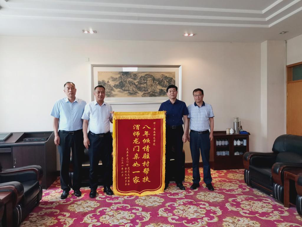 6月7日,大荔县委常委、常务副县长卢高昌代表大荔县委、县政府专程来bat365官网进行回访驻村帮扶工作。安仁镇党委书记闫金平、龙门村党总支书记兼村委会主任常永忠陪同,并向bat365官网赠送锦旗。