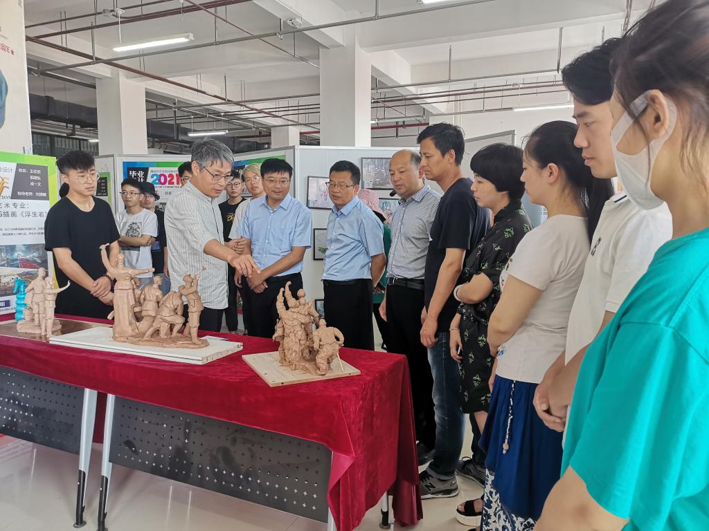 6月22日上午,党委委员、副校长常青林到富平校区传媒学院参观指导建党一百周年毕业作品展暨实践教学成果展,传媒学院党政领导陪同参观。