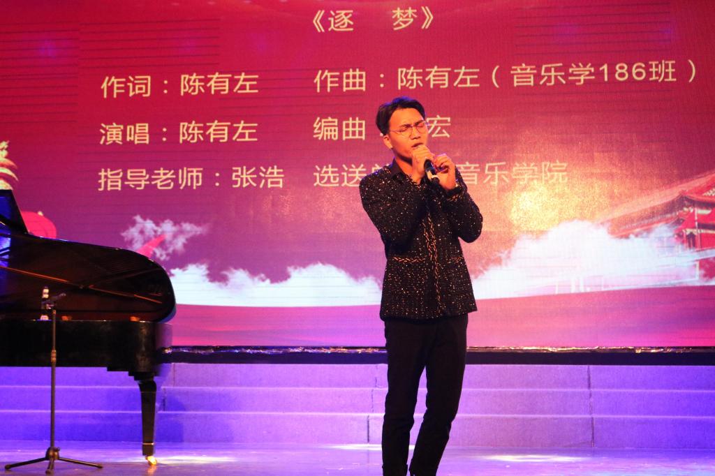 展演活动在气势磅礴的《共产党之歌》中拉开帷幕,音乐学院音乐学18级学生王洁用音符描绘出中国共产党勇于自我革命,自我创新,用严格的纪律要求保持旺盛的青春活力,用坚实的臂膀承载起人民的重托;歌曲《曙光》《命运与共》《长白山下太阳红》 歌颂了党的曙光照耀每一个奋斗的日子,奏响了划时代的乐章;莫斯科艺术学院音乐学H191班朱彤彤以《党由我唱》生动再现了党的奋斗历程,歌颂了党的百年荣光,重温了党的信仰信念;《党我共守百年心》《歌颂党》《党的好儿女》《民心》等歌曲展现了我党百年来艰辛求索百折不挠,奋进开拓走向胜利的伟大历程;音乐学院18级音乐学陈有左作词作曲《逐梦》,将新时代青年爱党爱国的炙热理想表现得淋漓尽致;《命运与共》《群心向党》《百年之路》 等歌曲将党的故事娓娓道来,从第一本《共产党宣言》,到第一面党旗升起,一百年里中国共产党披荆斩棘,行歌万里。