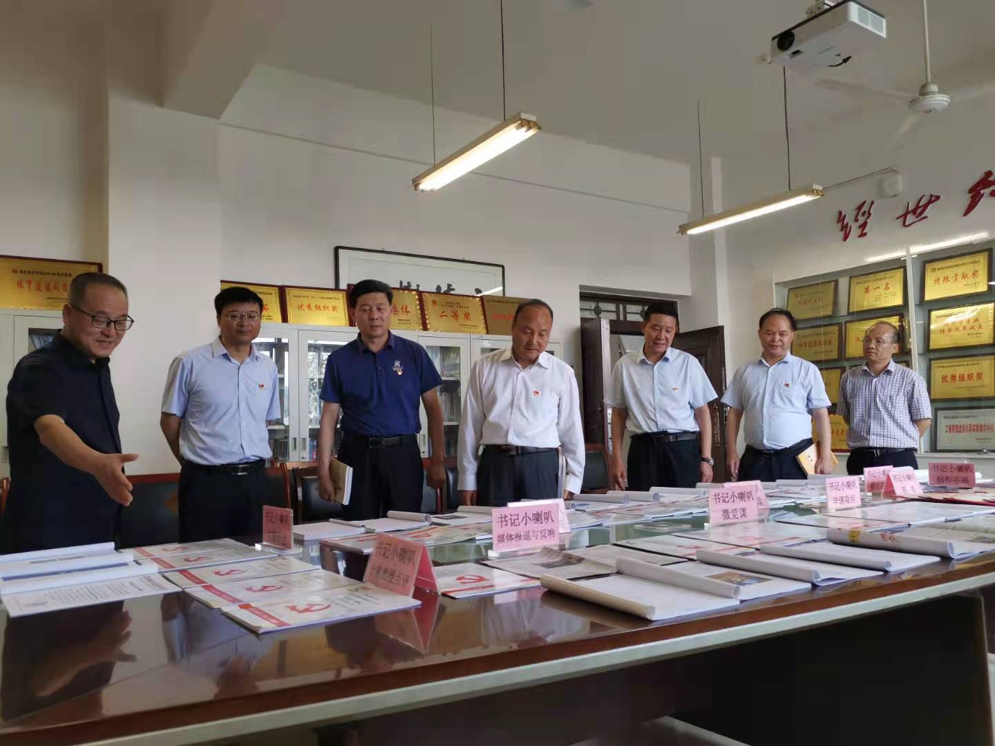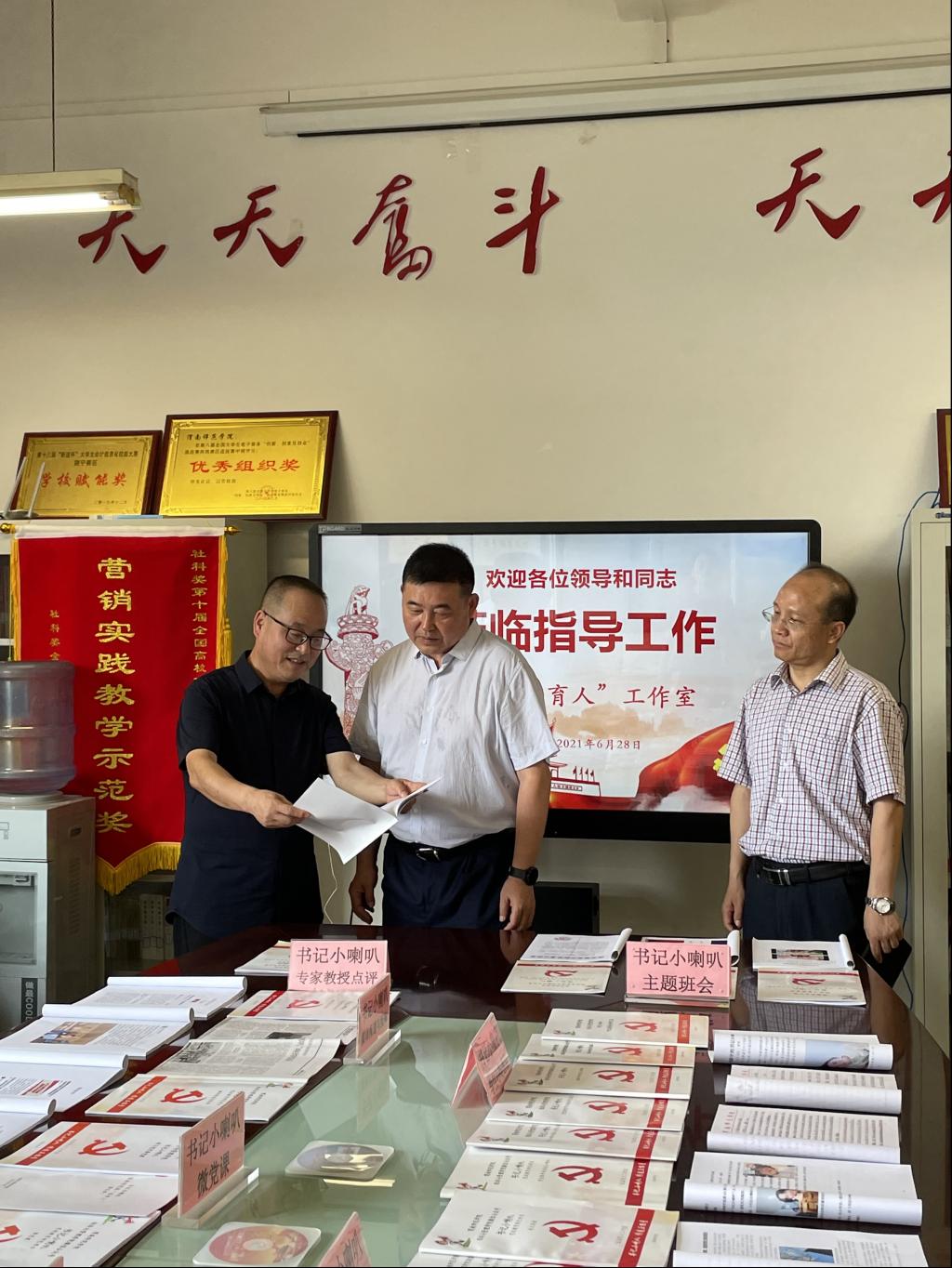 6月28日下午,校长赵曼,党委副书记任健,党委副书记、纪委书记肖耀刚,副校长常青林,党委委员、组织部部长凌朝栋一同观看了“书记小喇叭”思政育人成果展。在认真查看材料后大家一致认为,“书记小喇叭”的育人形式、内容和效果切合党的时代要求、围绕学校中心工作、符合学生思想实际,是近年来bat365官网思想政治教育的特色栏目,受到了师生的欢迎和好评。