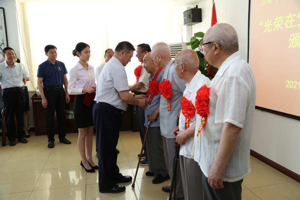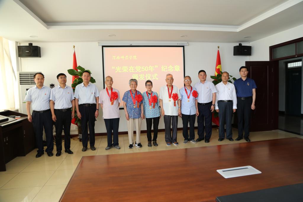 获得“光荣在党50年”纪念章的老党员代表,学校党委组织部、离退休党总支工作人员参加了颁发仪式。(通讯员 马雷蕾 李维喆 审核人 凌朝栋)